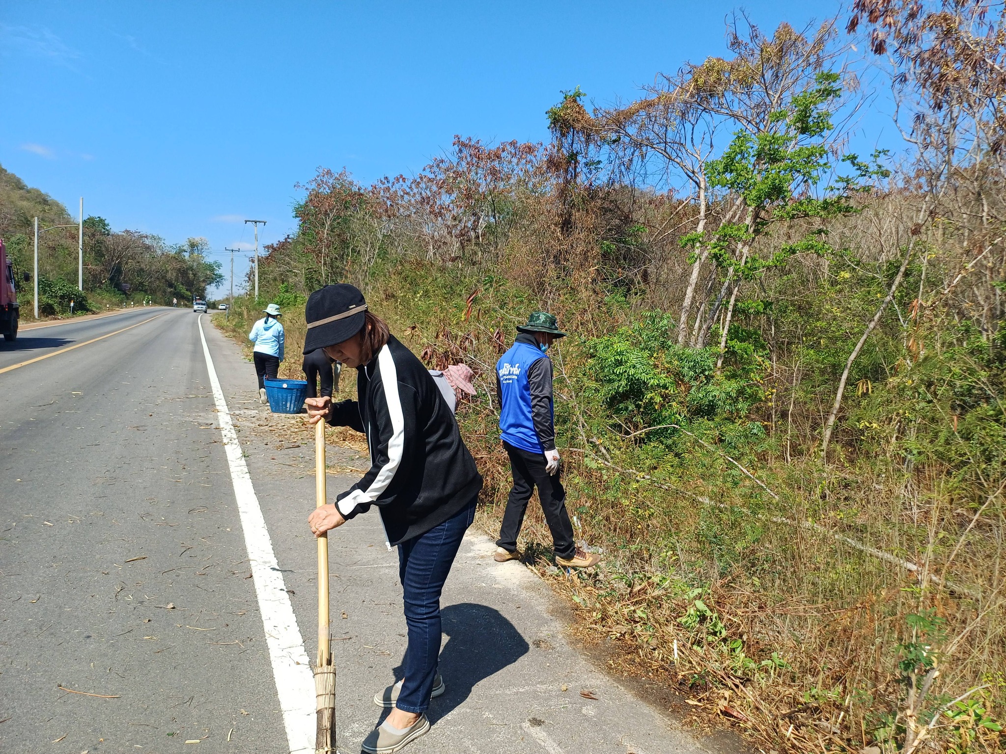 นางพรรณเพ็ญ มุยเจริญ นายกองค์การบริหารส่วนตำบลธรรมเสน พร้อมด้วย คณะผู้บริหาร สมาชิกสภาองค์การบริหารส่วนตำบลธรรมเสน ข้าราชการ พนักงาน ลูกจ้างองค์การบริหารส่วนตำบลธรรมเสน ร่วมกิจกรรม Big Cleanning Day เพื่อกำจัดขยะบริเวณ ถนนสายวังตะกู หมู่ที่ 6 - ถนนหน้าวัดถ้ำสาริกา ตำบลธรรมเสน