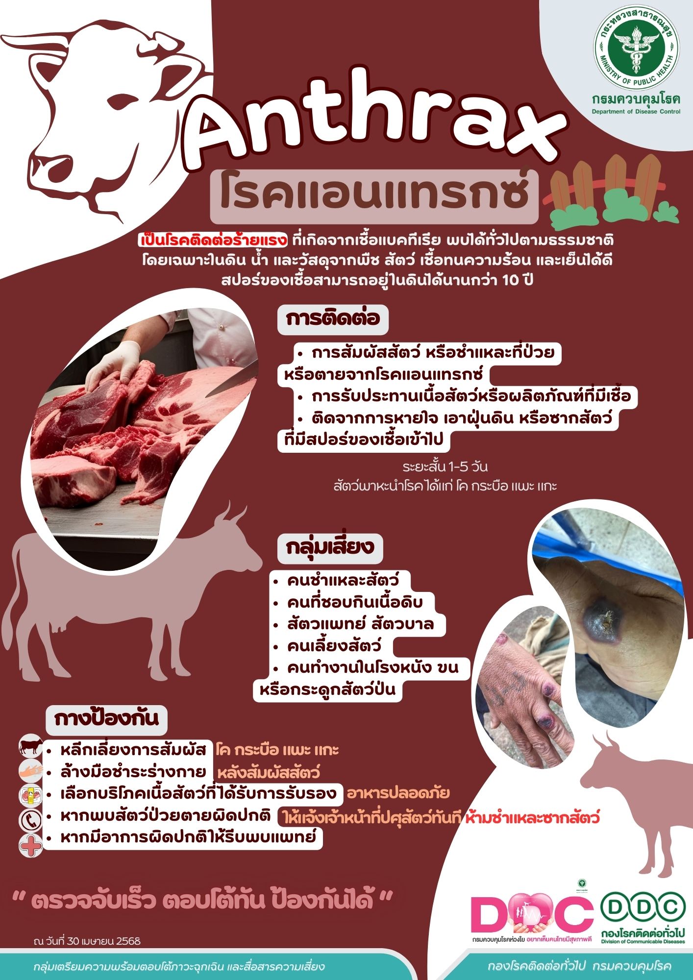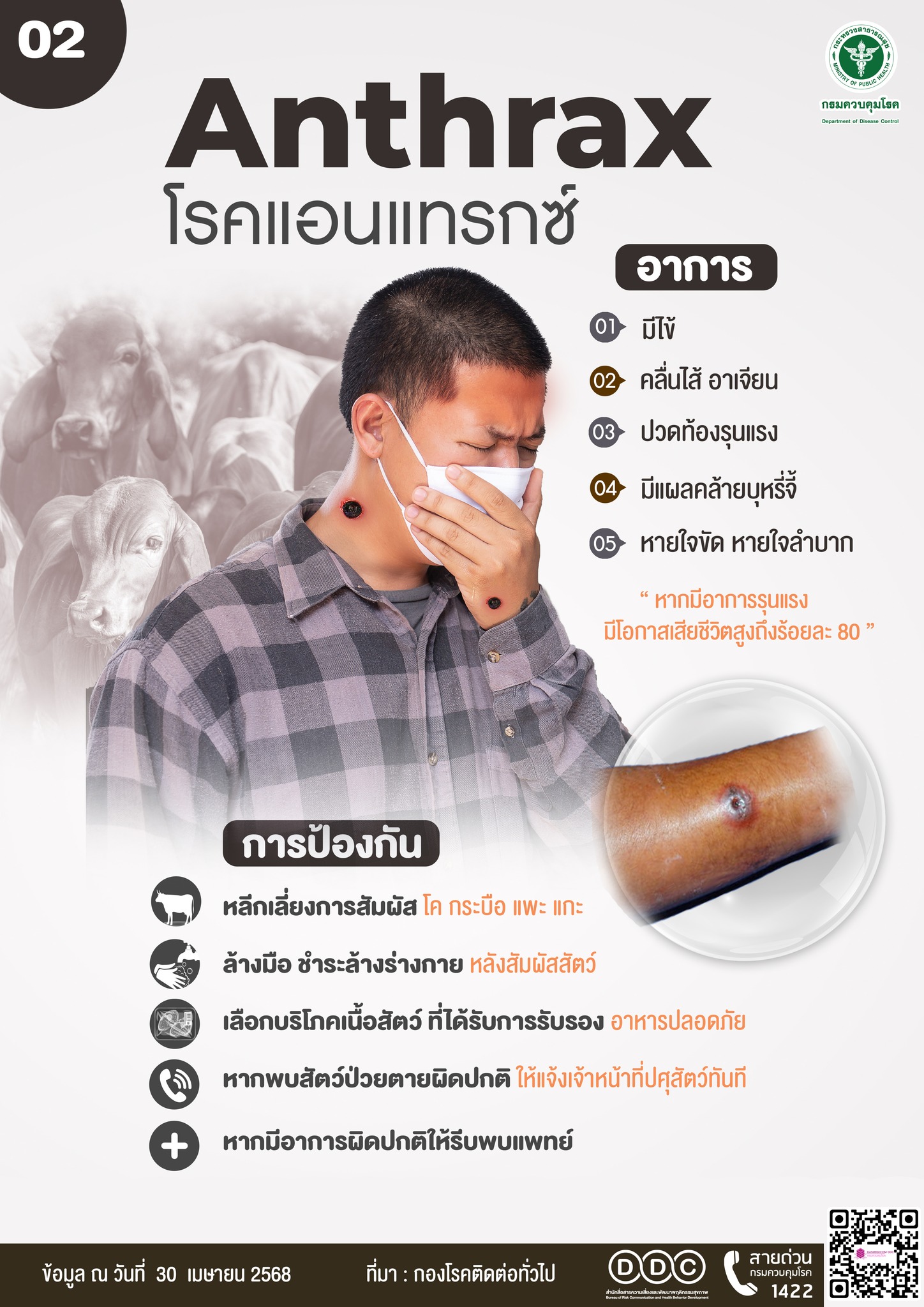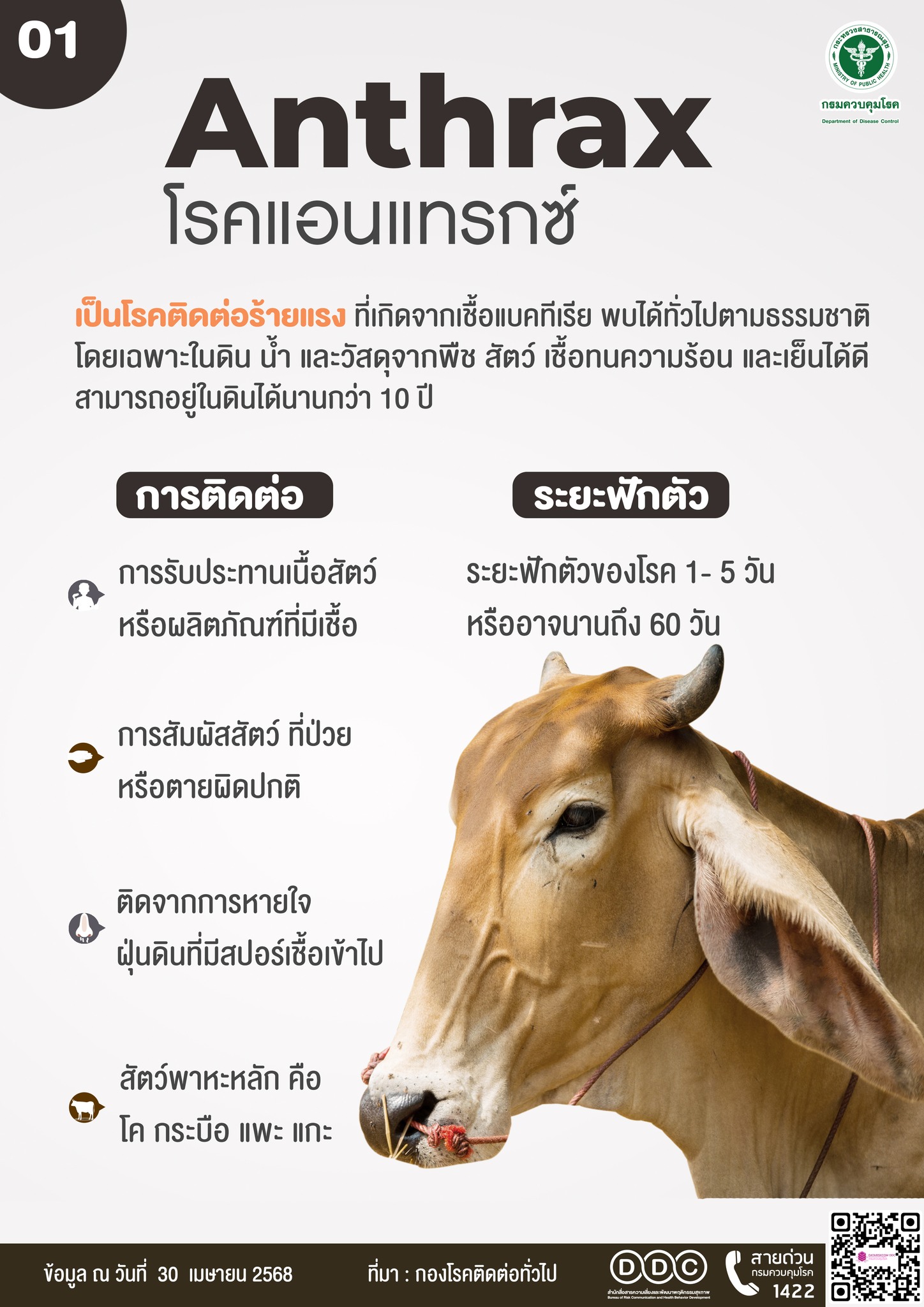 เป็นโรคติดต่อร้ายแรงที่เกิดจากเชื้อแบคทีเรีย พบได้ทั่วไปตามธรรมชาติ โดยเฉพาะในดิน น้ำ พืช ผัก หรือซากสัตว์ที่ปนเปื้อน เชื้อสามารถทนความร้อนและเย็นได้ดี สปอร์ของเชื้อสามารถอยู่ในดินได้นาน 10 ปีและเชื้อสามารถเข้าสู่ร่างกายของมนุษย์ได้ 3 ทางหลัก ดังนี้